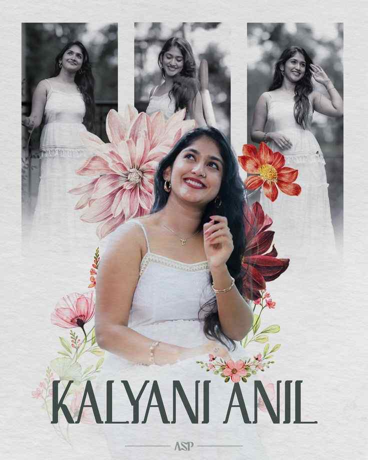 Use the uploaded reference image as the main subject. Strictly preserve the same face, identity, skin tone, and natural details. Do not modify facial features. Create a modern aesthetic editorial collage poster in a high-end Instagram trendy style. COMPOSITION: • Remove background from the reference image and place the subject in the center (waist-up crop, sharp focus, high detail) • Duplicate the same subject 3 times and arrange them in the background (top left, top center, top right) • Convert these background duplicates into black and white • Apply soft blur and reduce opacity (60–70%) for a faded layered effect • Ensure the center subject remains in full color, bright, sharp, and visually dominant BACKGROUND: • Use a soft beige / off-white textured paper background • Minimal, clean, aesthetic look with subtle grain ELEMENTS: • Add large realistic floral elements (pink, peach, red flowers) • Place flowers behind the subject and slightly overlapping in front for depth • Add small leaves and subtle floral accents around the composition • Maintain balanced and symmetrical editorial layout TYPOGRAPHY: • Add bold elegant serif font (Vogue-style, luxury editorial look) • Text at bottom: "KALYANI ANIL" • Increase letter spacing slightly for premium feel • Add a thin decorative horizontal divider line below the name • Center-align text and keep it minimal LIGHTING & COLOR: • Soft natural lighting on subject • Warm pastel tones and smooth color grading • Maintain realistic skin texture (no over-smoothing) • Add subtle shadow under subject for depth QUALITY: • Ultra high resolution, 4K • Professional editing, sharp details, clean edges IMPORTANT: • Do NOT change face, expression, or identity • Keep original pose and natural look • Maintain realistic proportions and features STYLE KEYWORDS: aesthetic collage poster, editorial magazine layout, floral design, minimal luxury, soft vintage, instagram trending, high fashion style, clean composition EXTRA: image reference strength high, face consistency, identity preservation, no face distortion.